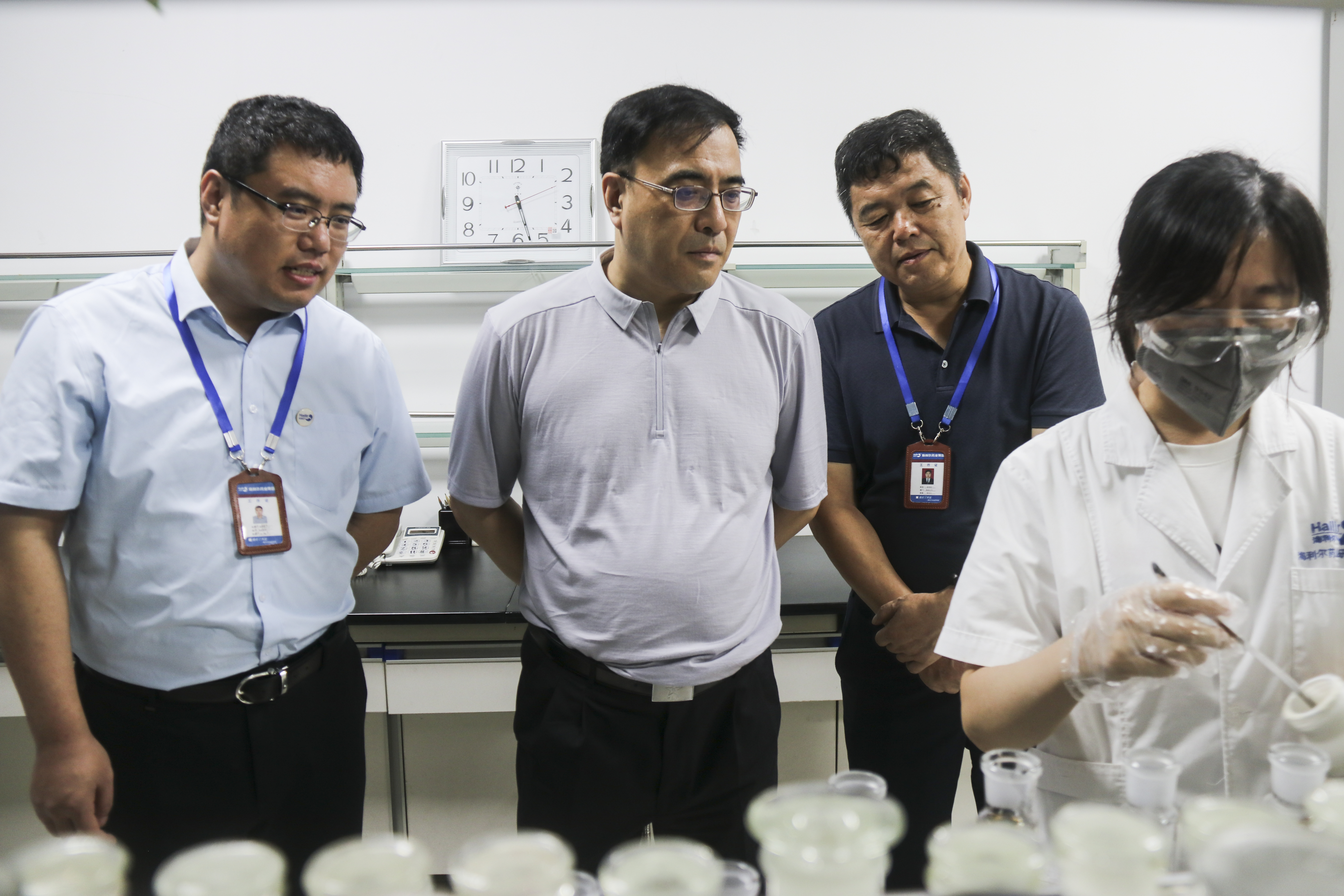 随后,领导一行来到集团研发中心,仔细观看了分析设备的使用、重点产品差异化等方面的演示和讲解,对于目前海利尔在研发方面取得的成果表达了高度的肯定和认可。王厅长对于海利尔在研发方面展示出的持续创新能力高度赞誉,表示海利尔在很多方面实现了与跨国公司平齐的层面,认为“海利尔就是踏踏实实、实实在在的做事业”。王厅长指出,今年的夏粮丰收来之不易,是种出来的、管出来的,也是抢出来的,全省上下积极应对病虫草害等不利条件,各农药企业为确保夏粮丰收做出了积极贡献。王厅长强调,当前种衣剂等市场巨大、前景广阔,希望海利尔在行业细分领域能有更大的作为和担当。